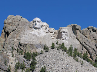 Mount Rushmore in South Dakota was started in 1927 and finished in 1941.  Even with the use of modern machinery; there is plenty of evidence of where the stones were put after construction (right below the monument).